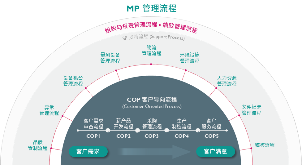 流程和系统的整合管理,使用PDCA循环与基于风险思维来加以达成,利用机会并防止非预期的结果,迈向持续改善的驱动力量,以确保质量与效率跃升。